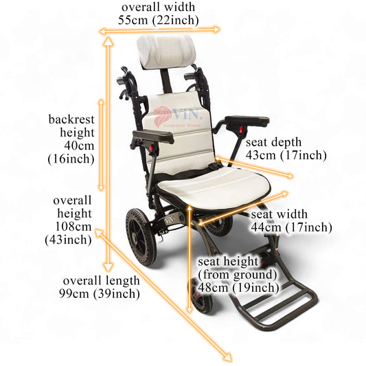 ViN DY821 | Pushchair + Aluminum Lightweight & Anti Rust+ Washable Cushion + Armrest Lift Up + Retractable Footrest+ Anti Tipper