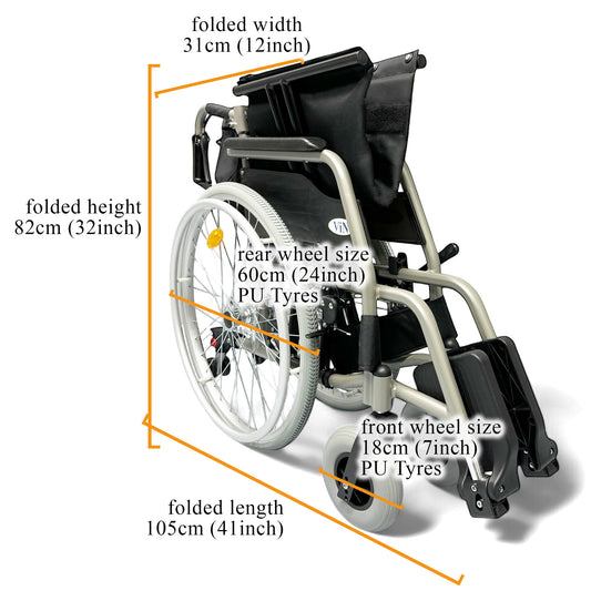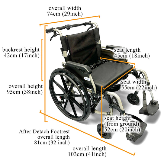 ViN 46AL | BIG Wheelchair - Hold 150 KG + 56 CM Seat Width + Self Propelled - Armrest & Leg Rest Detachable