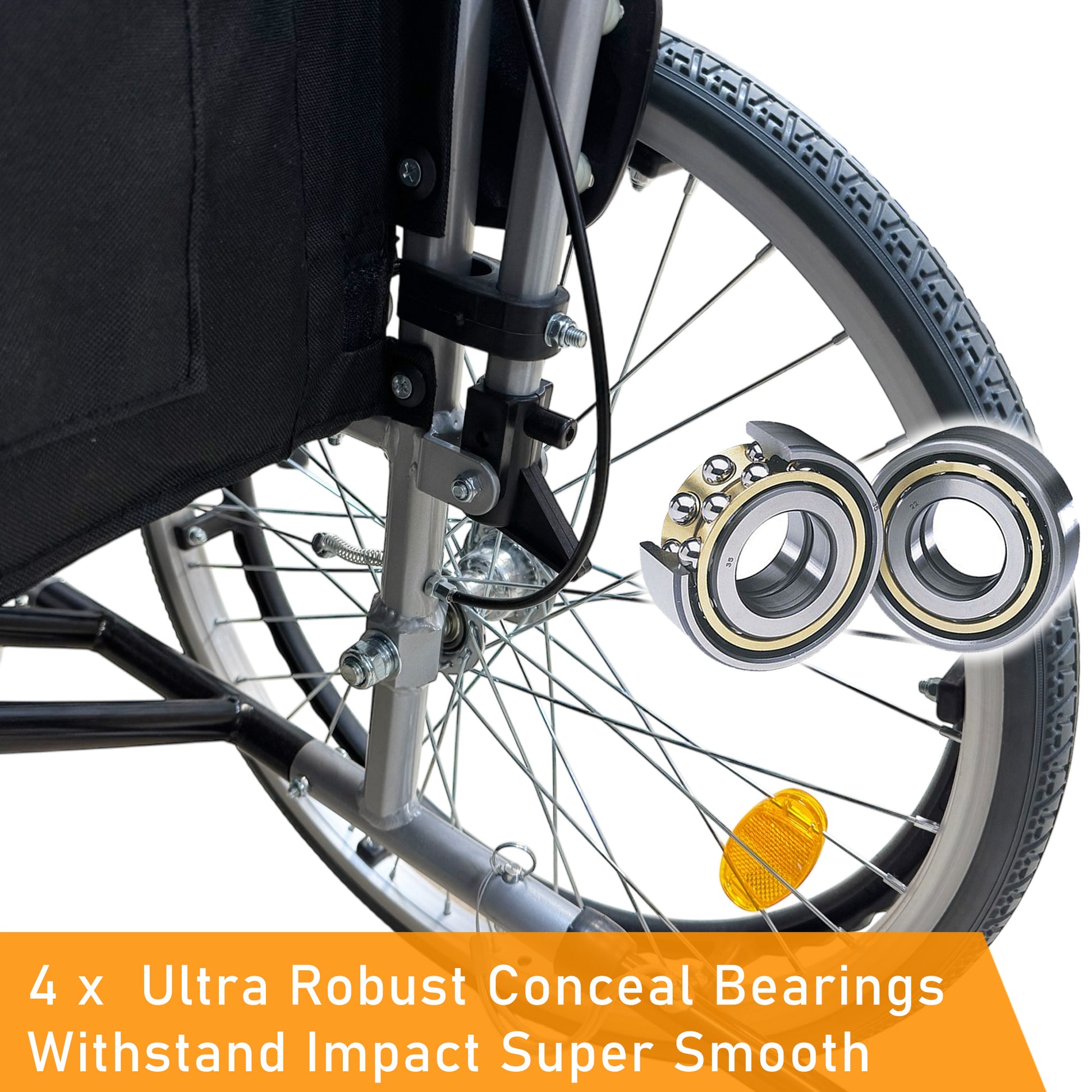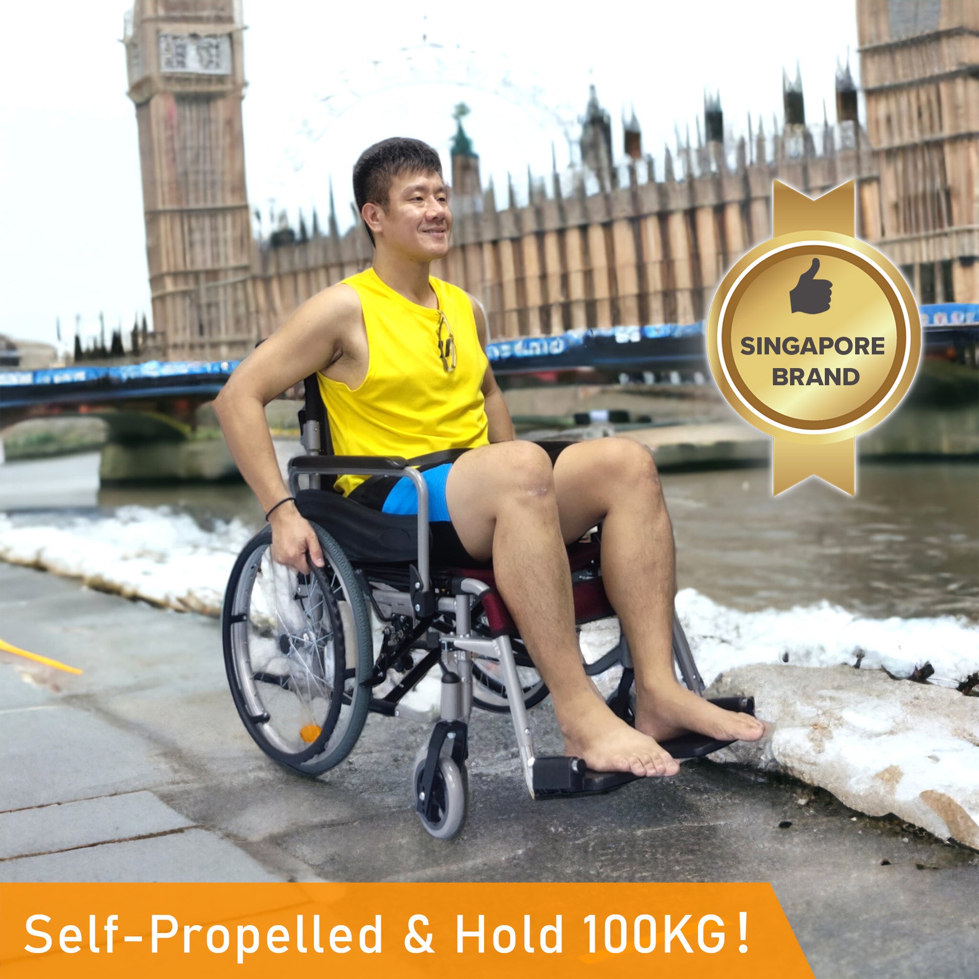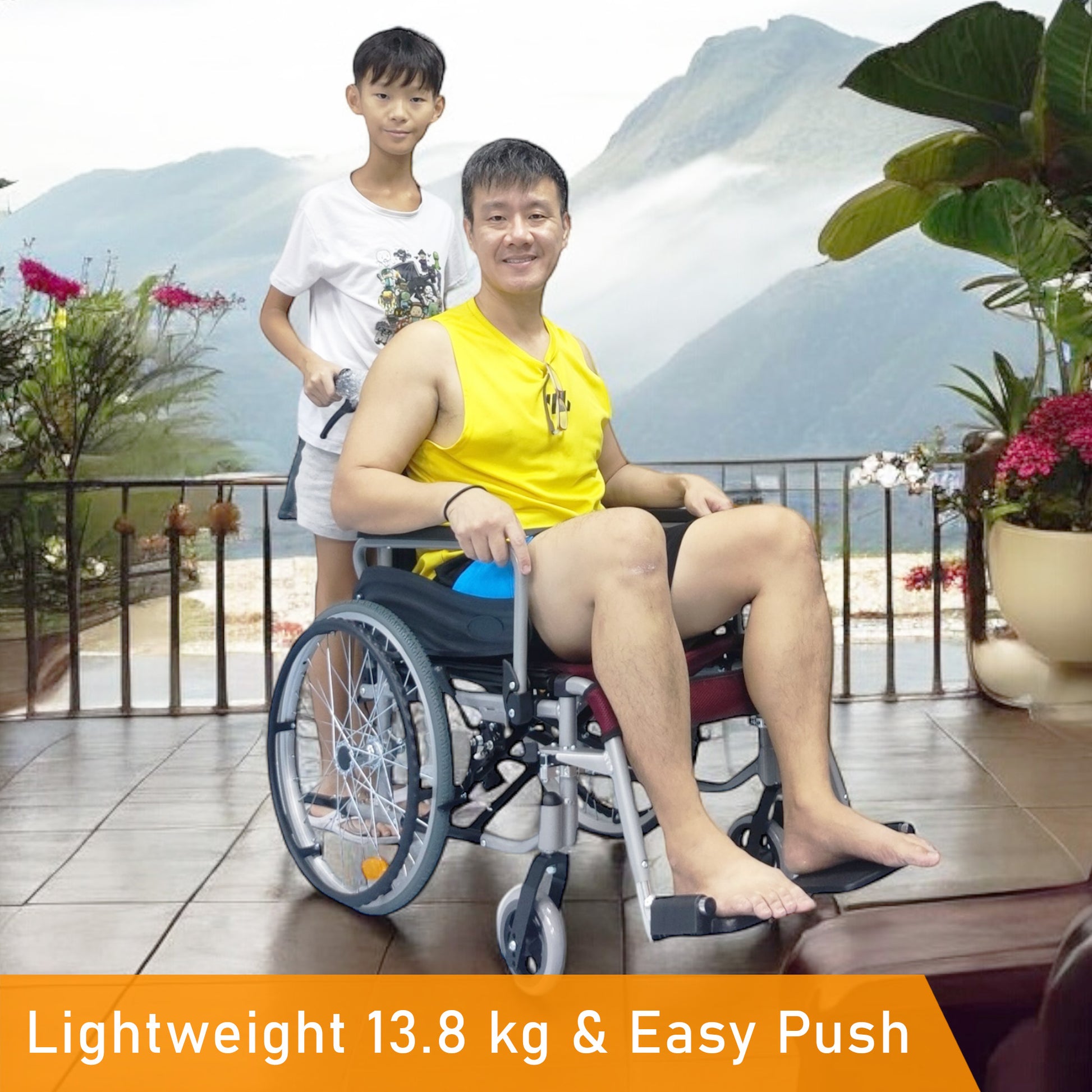 Extremely durable, and lightweight aluminum self-propelling wheelchair equipped with state-of-the-art functionality.
