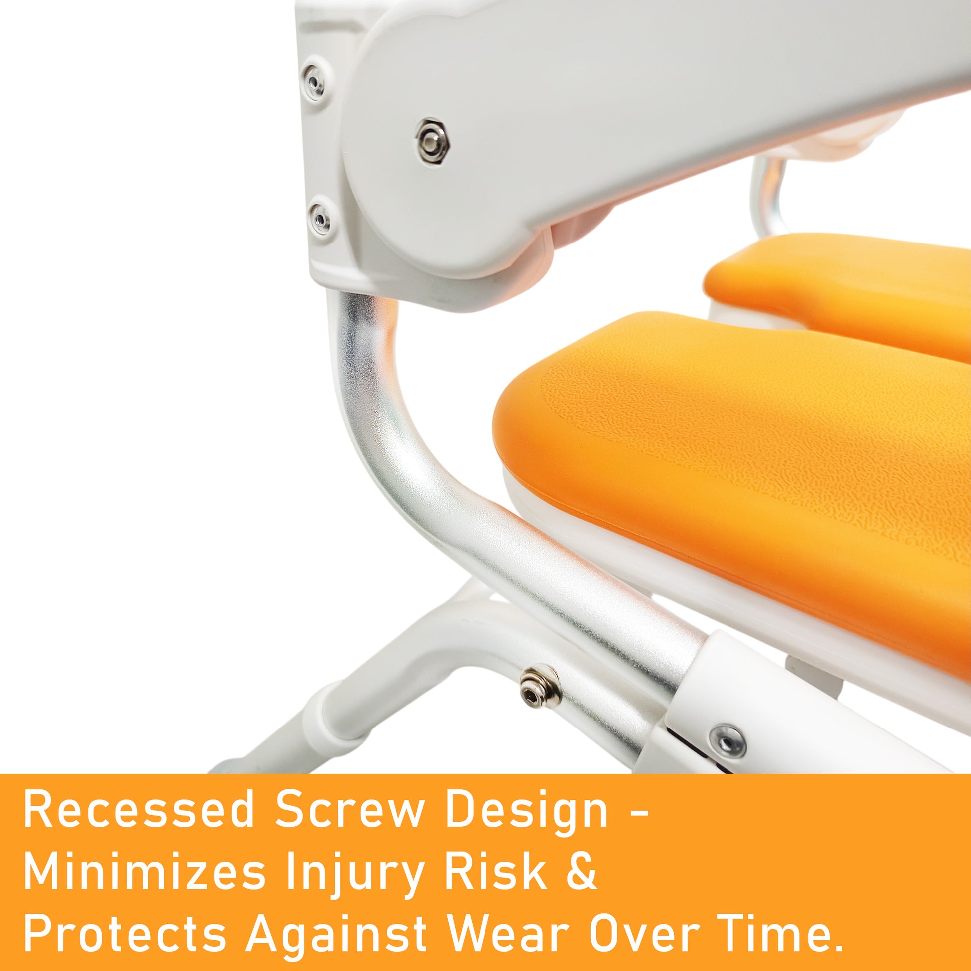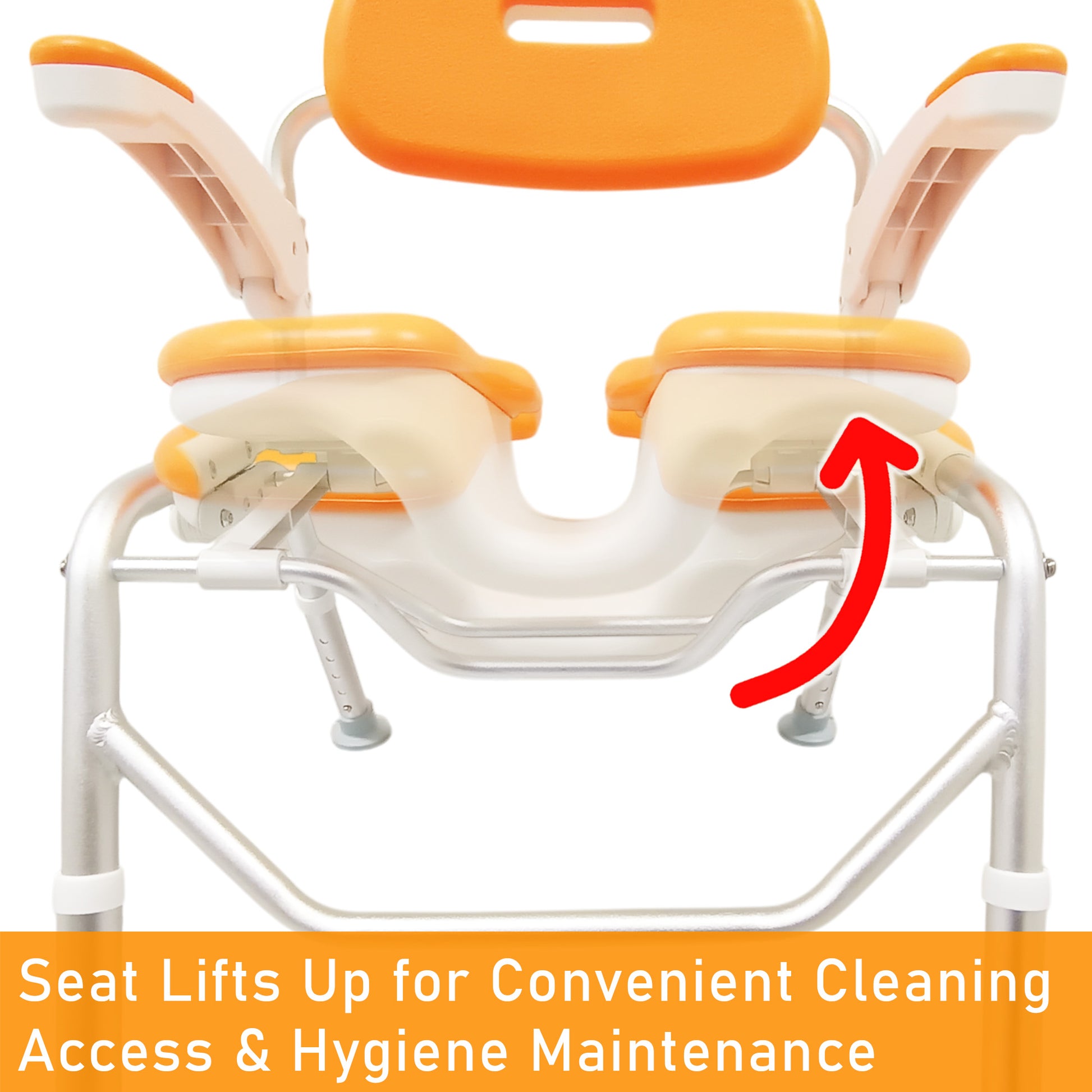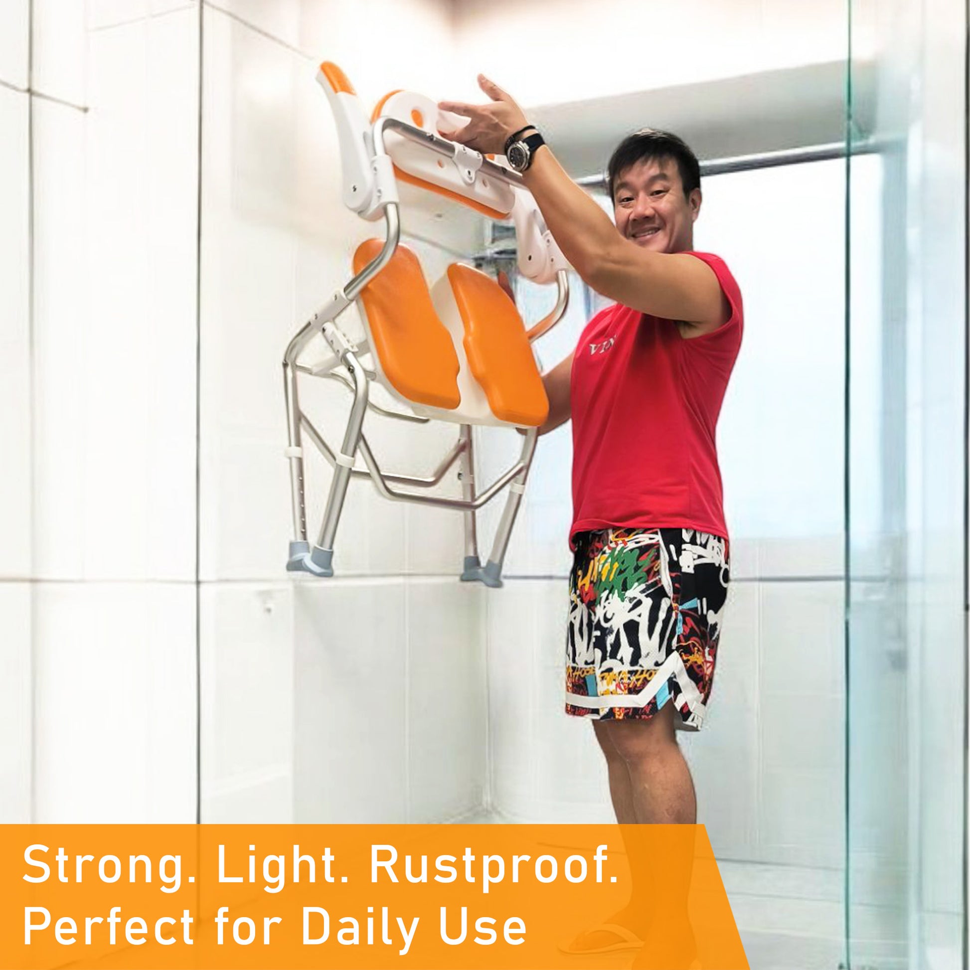 ViN-SC01 | Foldable Shower Chair + Detachable Waterproof EVA Soft Cushion + Armrest Flip Up + Adjustable height + Height Adjustable + Slip Resistant + U-Shape Groove Cutout for Private Cleaning