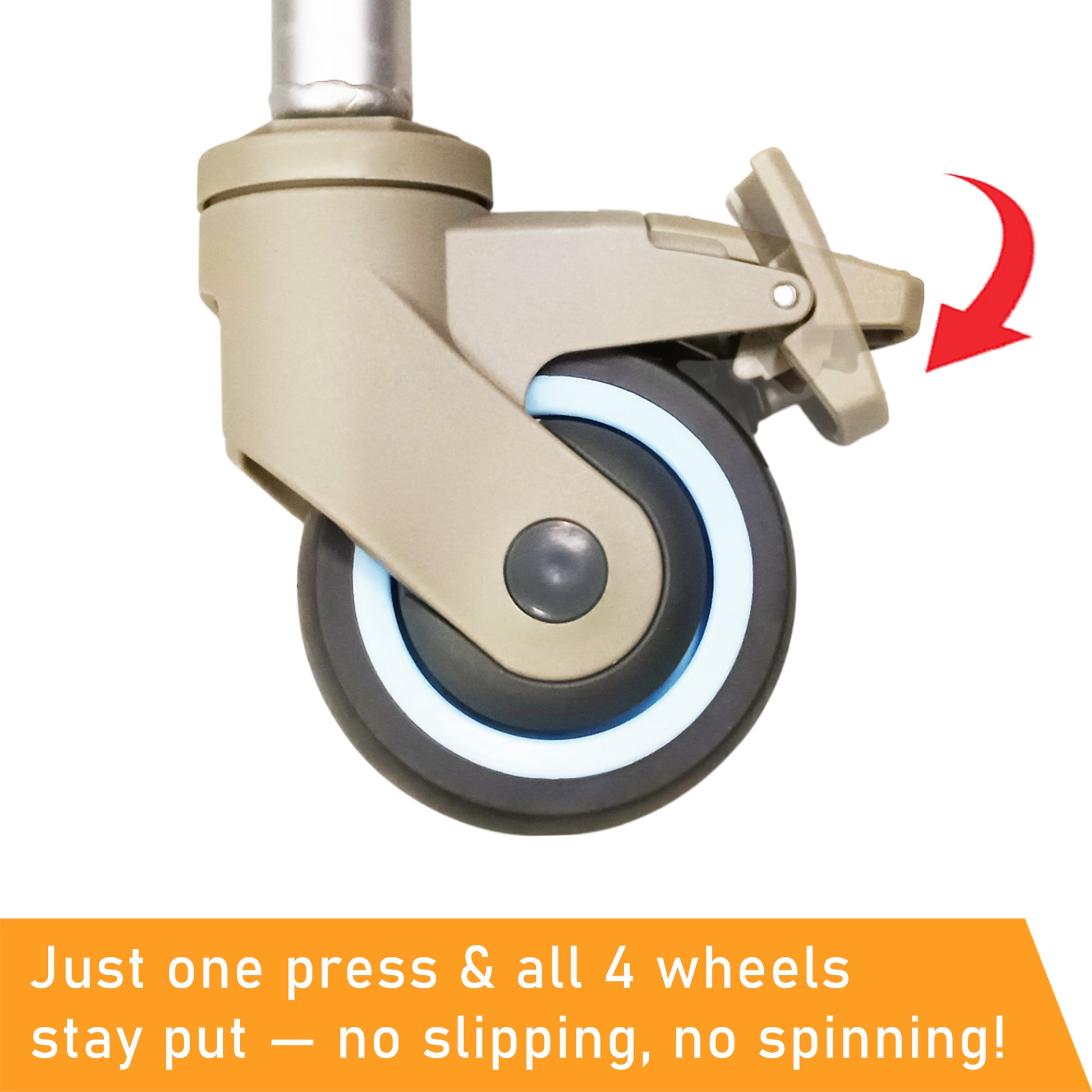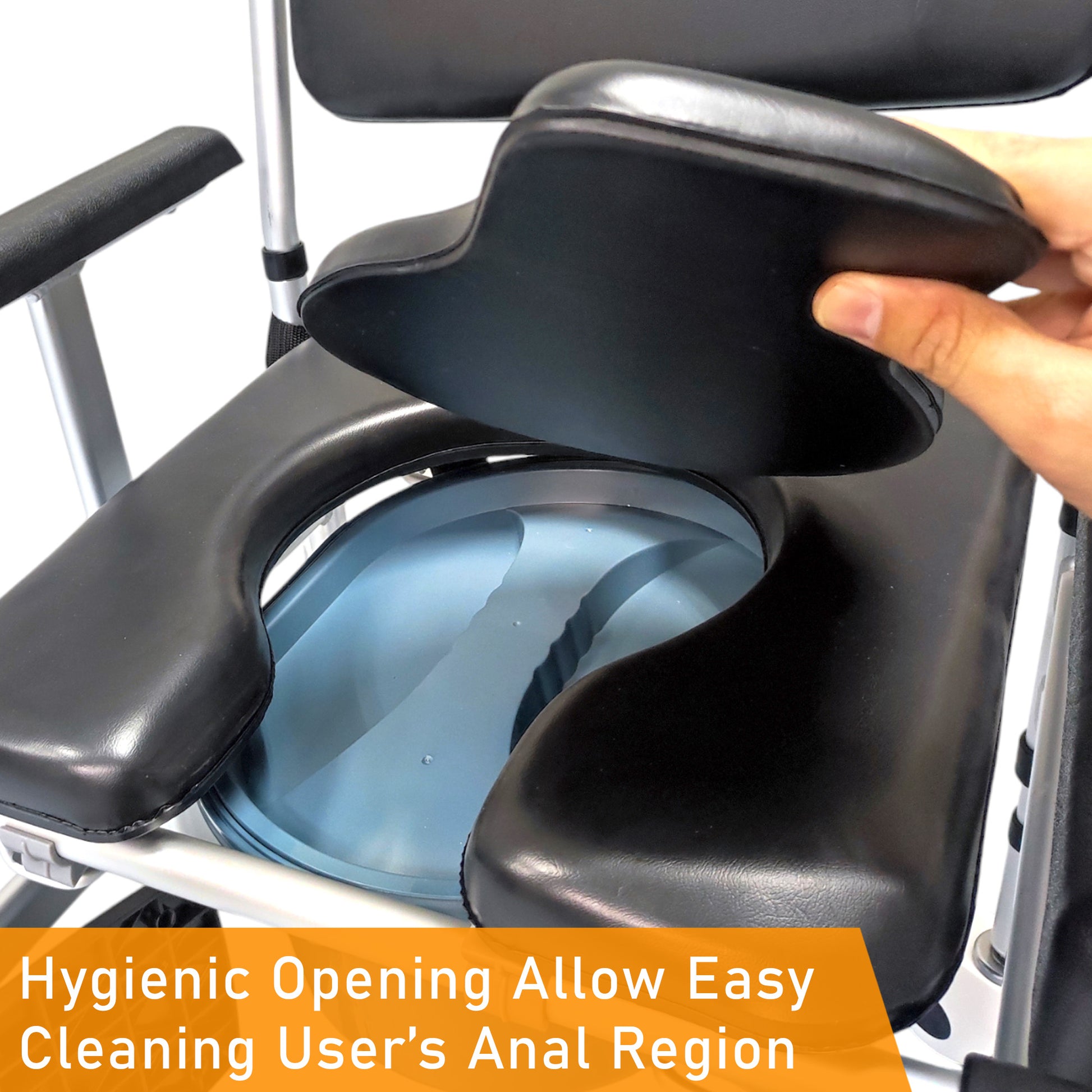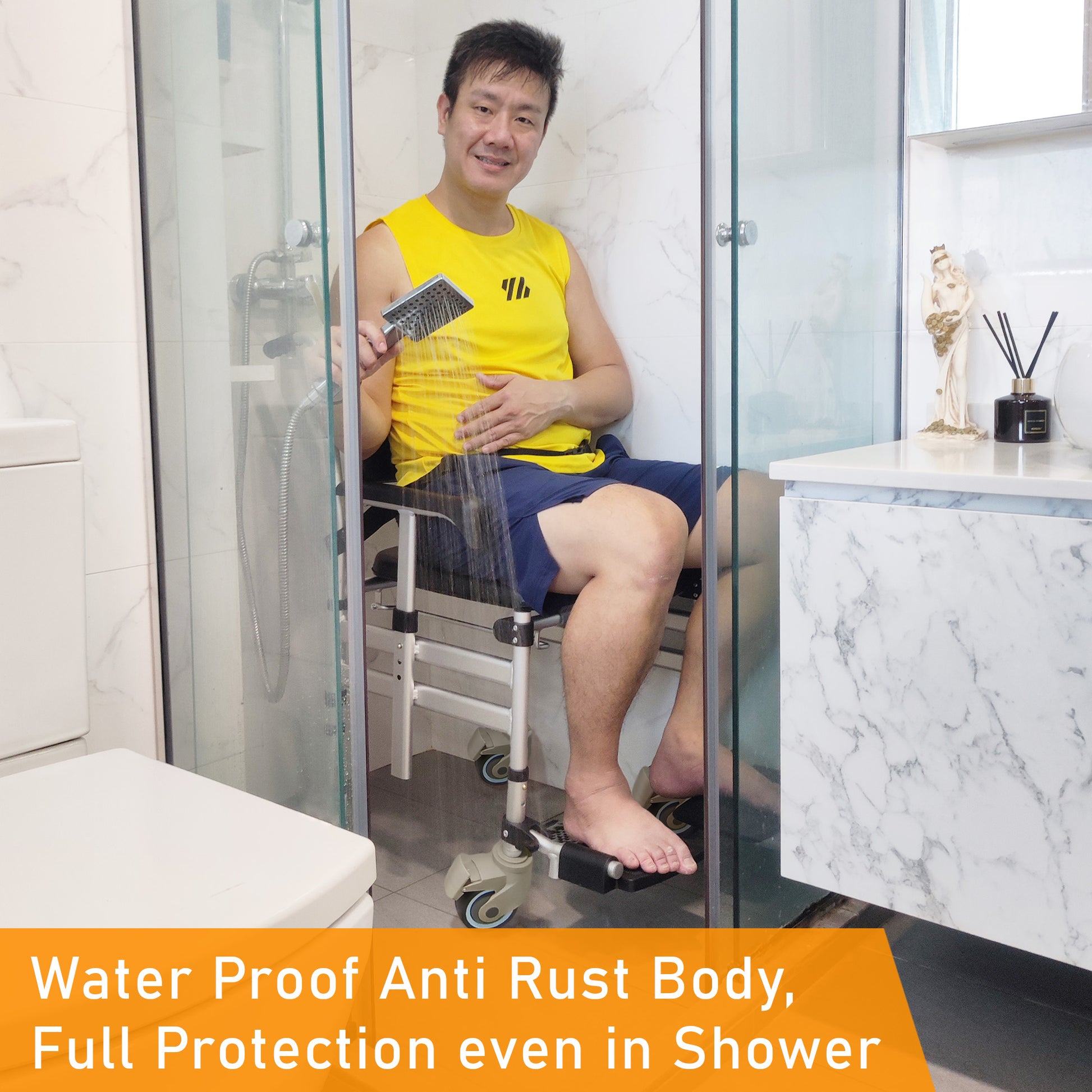 If not being used for showering, it can be used as a wheelchair due to its super smooth wheels. It also comes with a safety belt, allowing the user to be pushed around the house safely.