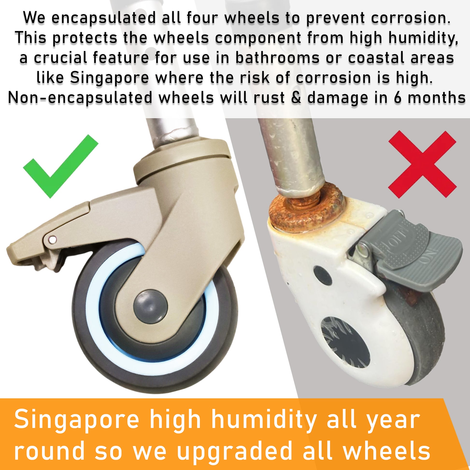 ViN Z05 | Shower Commode Indoor Wheelchair + Foldable + Adjustable height + 4 Lockable Wheels + Flip Down Armrest