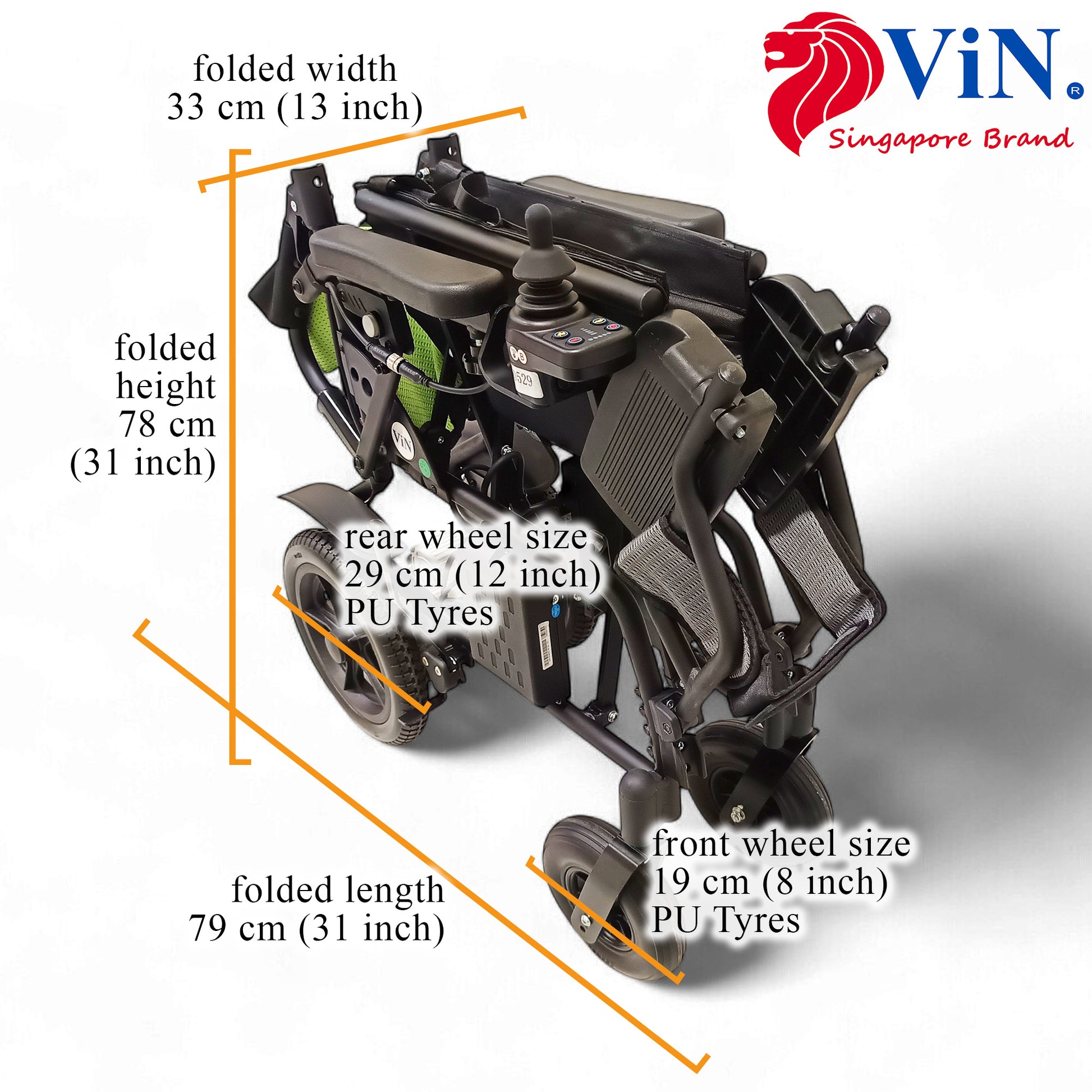 ViN-46A14 | Motorised Electric Wheelchair +Aluminium lightweight Anti Rust +Armrest Flip Up +Anti-Tipper