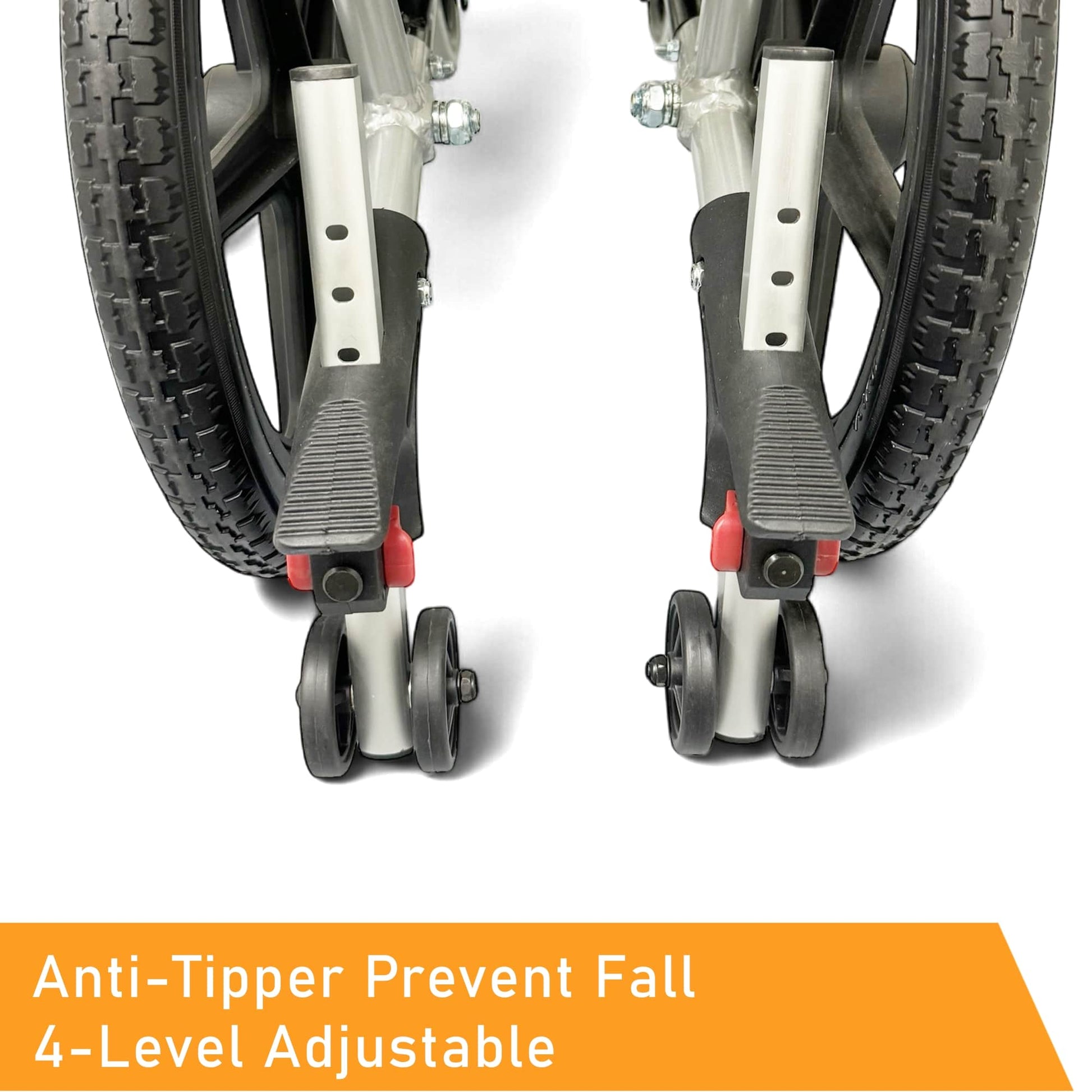 Robust 4mm thick anti-rust aluminum alloy ensuring reliability. Lift-up armrests & detachable leg rests easily transfer the user from the wheelchair to another seat. Machine-washable cushions guarantee clean & comfortable. The innovative anti-tipper mechanism prevents the wheelchair from falling backward if the helper is careless. High-quality customized Premium Wheelchair