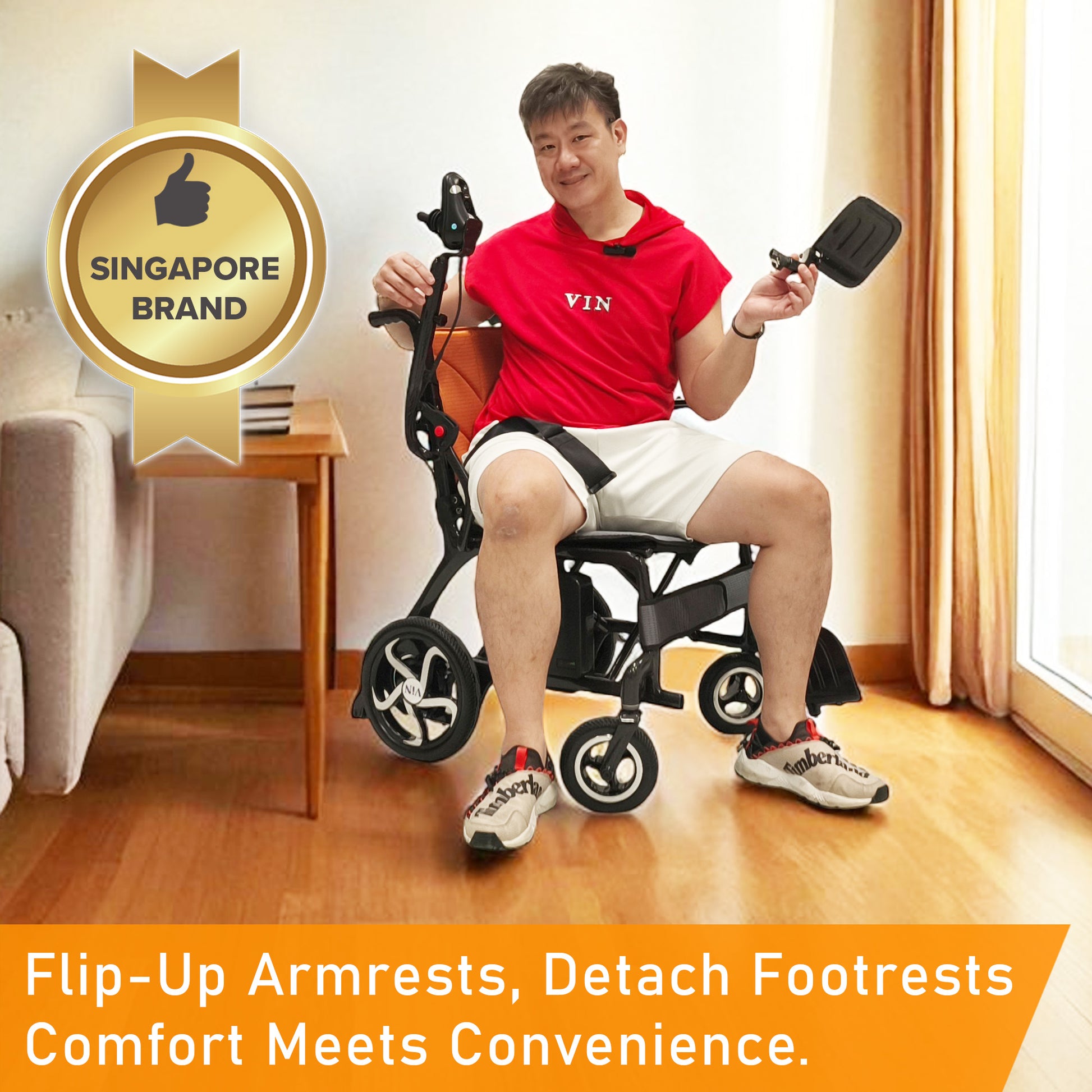 ViN-46A7 | Motorised Electric Wheelchair +Carbon Fiber Ultra lightweight Corrosion-Resistant +Armrest Flip Up +Detachable & Washable Cushion +Anti-Tipper