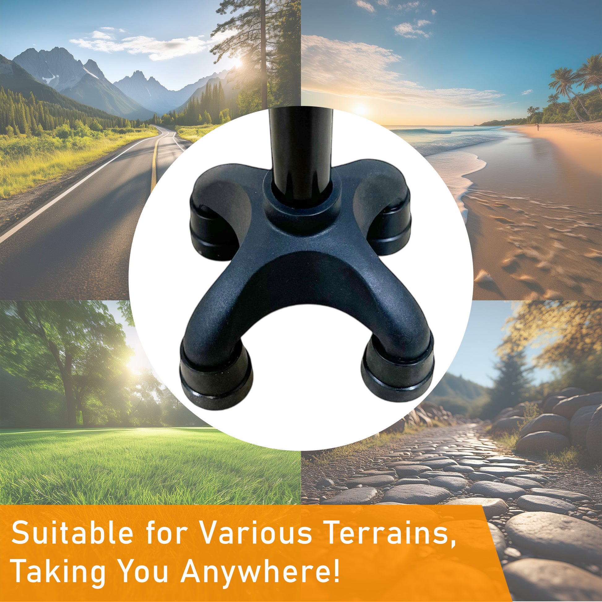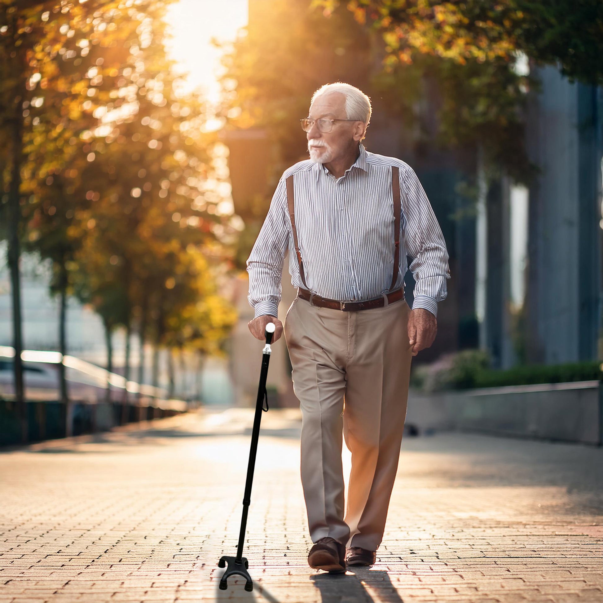 Finally, the base of the cane is made with non-slip materials that effectively increase friction with the ground, reducing the risk of slipping. Whether indoors or outdoors, the cane base adapts to various terrains, providing users with a safe and stable walking experience.
