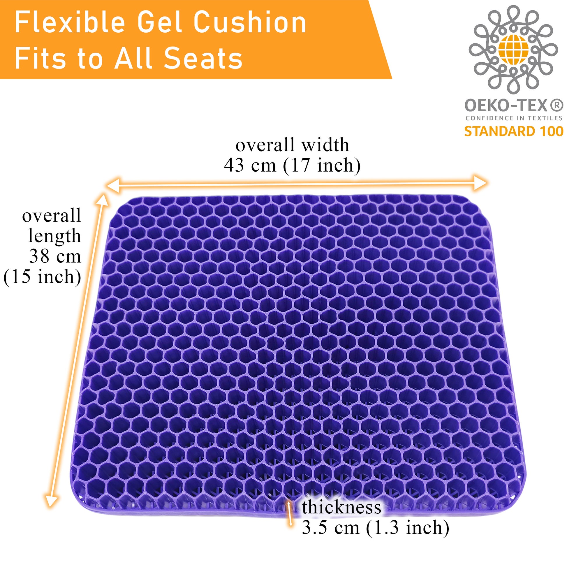 Our ultra-thick gel seat cushion with Silky Black seat Cover with a honeycomb design provides both softness and support, perfect for relieving pain in your lower back, sciatica, tailbone, and buttocks.