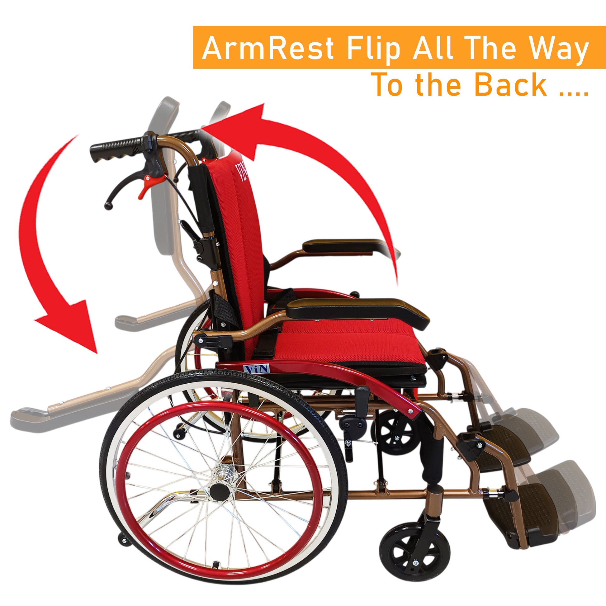 ViN-DY879 | Self Propelled Wheelchair - Flip-Up Armrest - Retractable Footrest - Anti Tipper