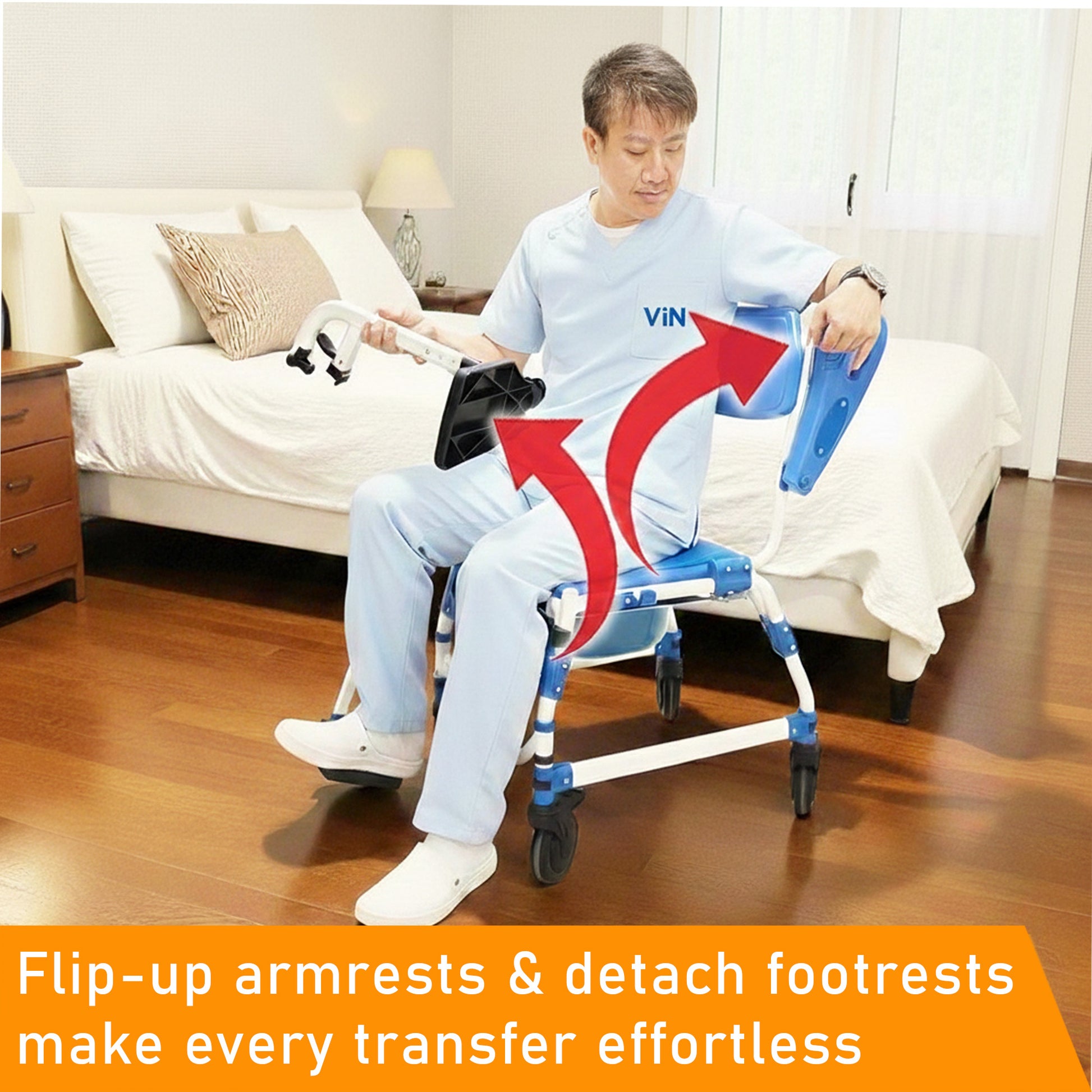 ViN-K02 Extra-Wide Indoor Shower Commode Aluminum Toilet chair [Hold 150 kg]