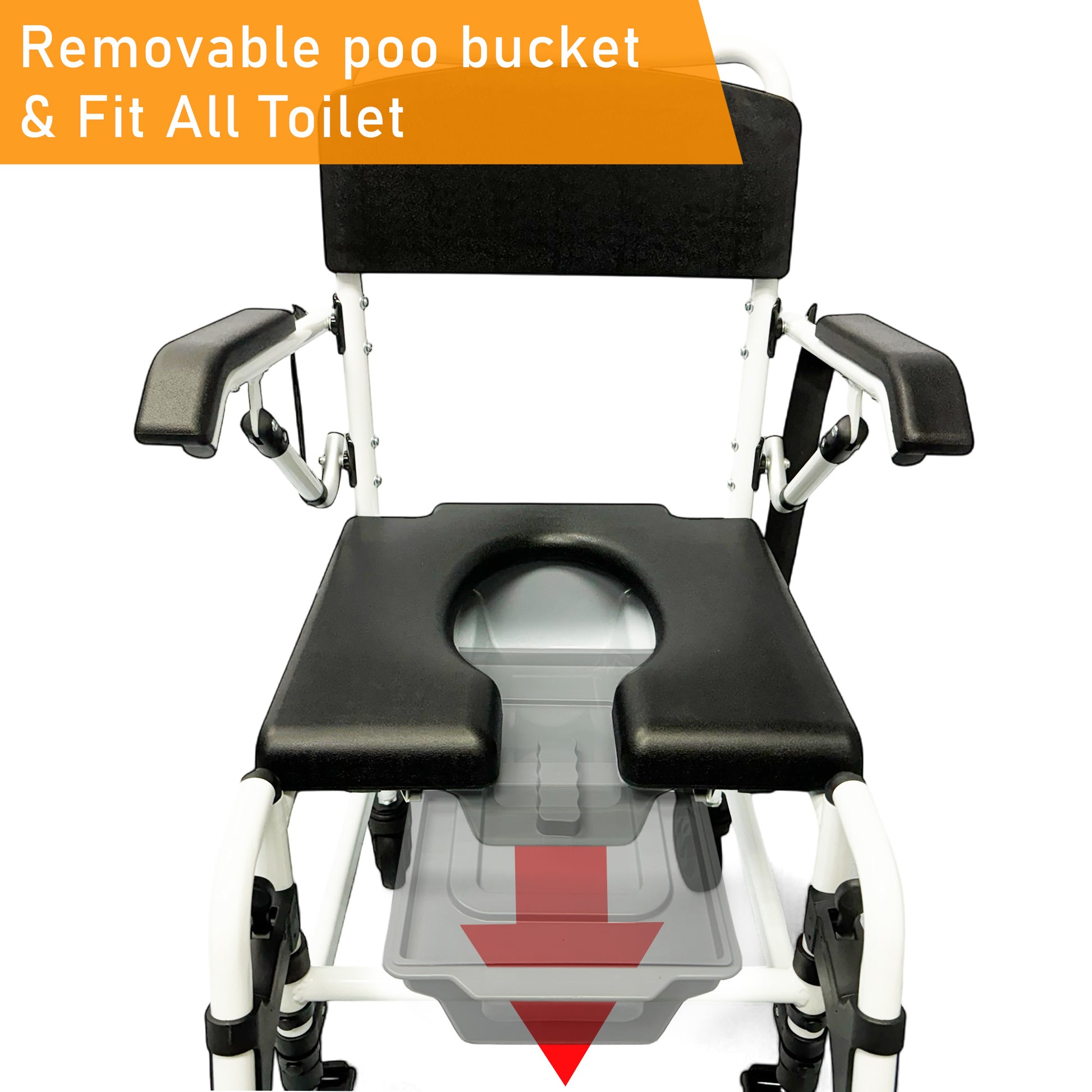 Removable Bucket - A commode with a removable bucket offers a convenient and practical solution for individuals who need to use the bathroom at home. The bucket is positioned beneath the seat and can be easily removed for quick and hygienic waste disposal.
