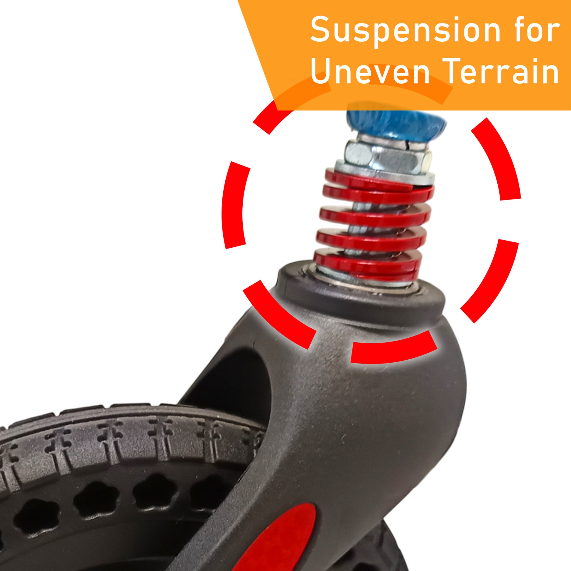 The built-in suspension system absorbs shocks and vibrations for a smoother, more comfortable ride.